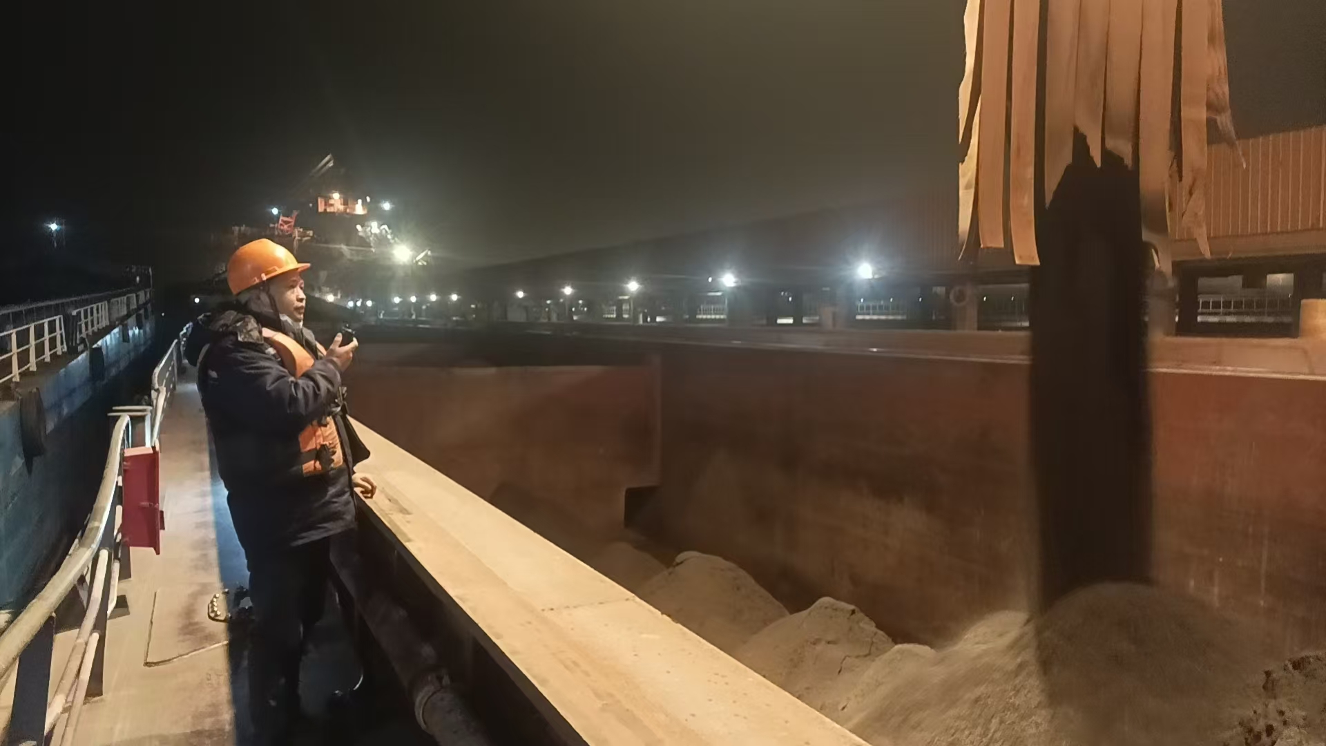 近期,长江下游港口气温持续降至冰点以下,船舶甲板结冰湿滑,给现场作业带来极大的挑战。同时,受多点放矿模式推行影响,矿石到港量大幅攀升,进一步加剧了装船作业的压力与难度,对作业效率、安全管控及精准度提出了更高要求。
