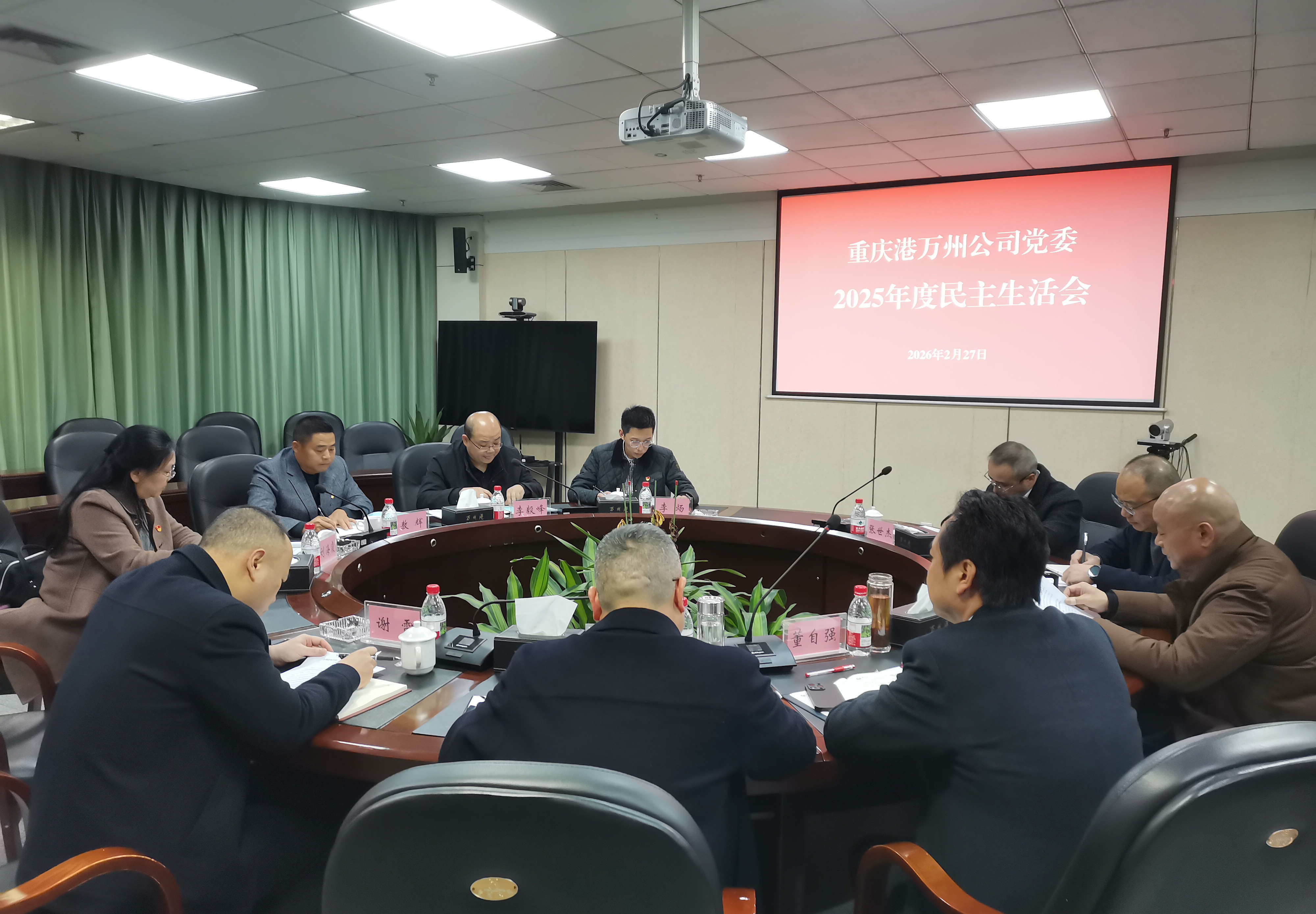 2月27日下午,万州港党委召开2025年度民主生活会。重庆港党委副书记、工会主席敖辉携党委工作部、工会工作部有关同志到会指导并作点评讲话。万州港党委书记、董事长谭必学主持会议,全体班子成员参会。