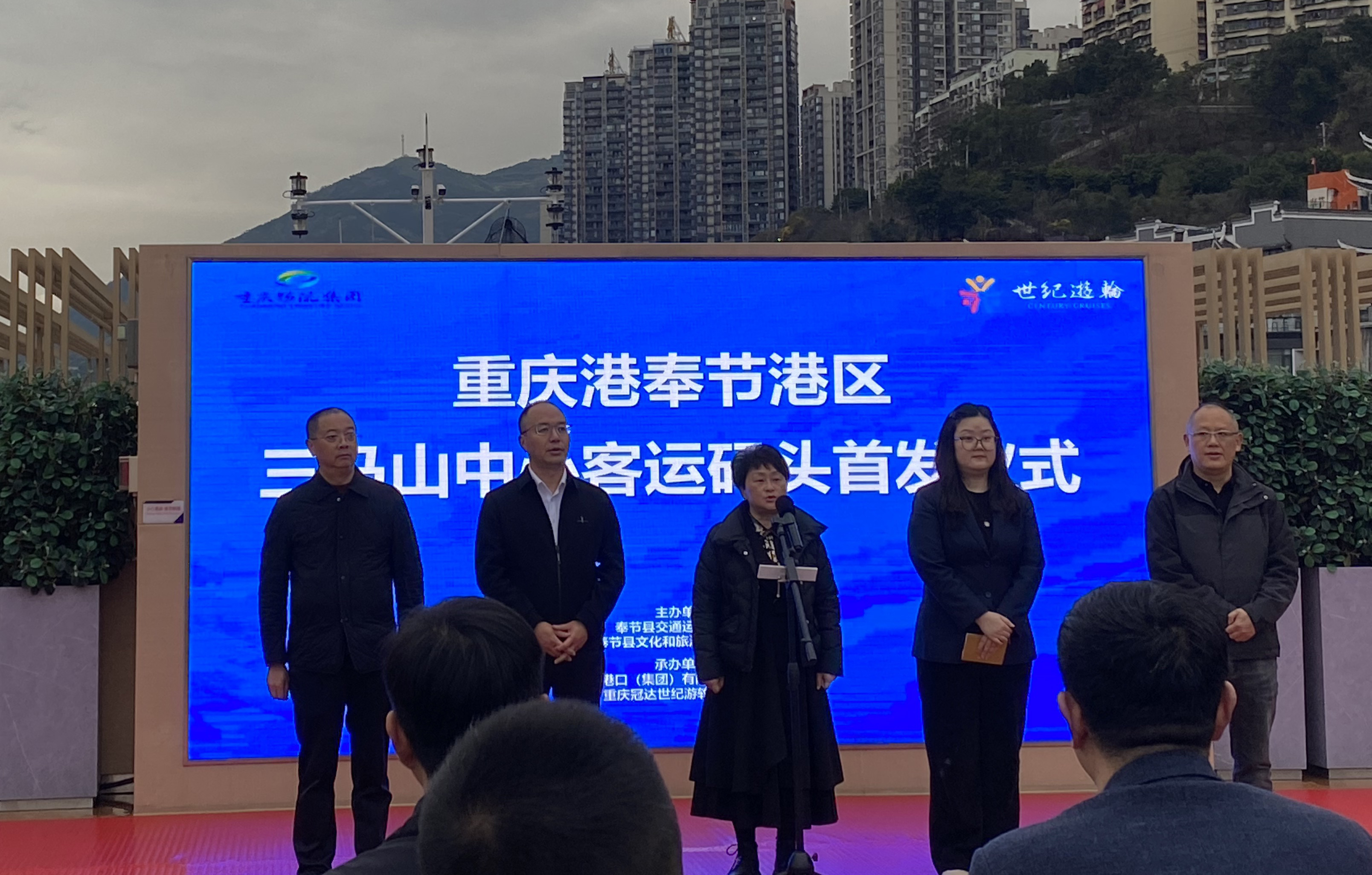 为推动奉节县打造夔门印象旅游文化特色街,助力黄金水道高质量发展,3月16日,重庆港奉节港区三马山中心客运码头首发仪式隆重举行,首班游船“世纪江山如诗”鸣笛离港、顺利首航。奉节县副县长李晓霞,万州港党委副书记、纪委书记、工会主席张文军出席并致辞。奉节县交通运输委、港航海事事务中心、海事处等相关部门负责人,运营单位代表参加仪式。