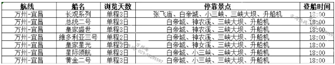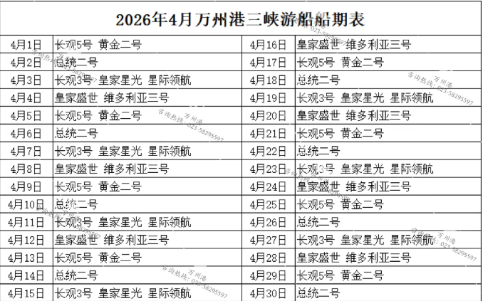 2026年4月万州港船期信息表
